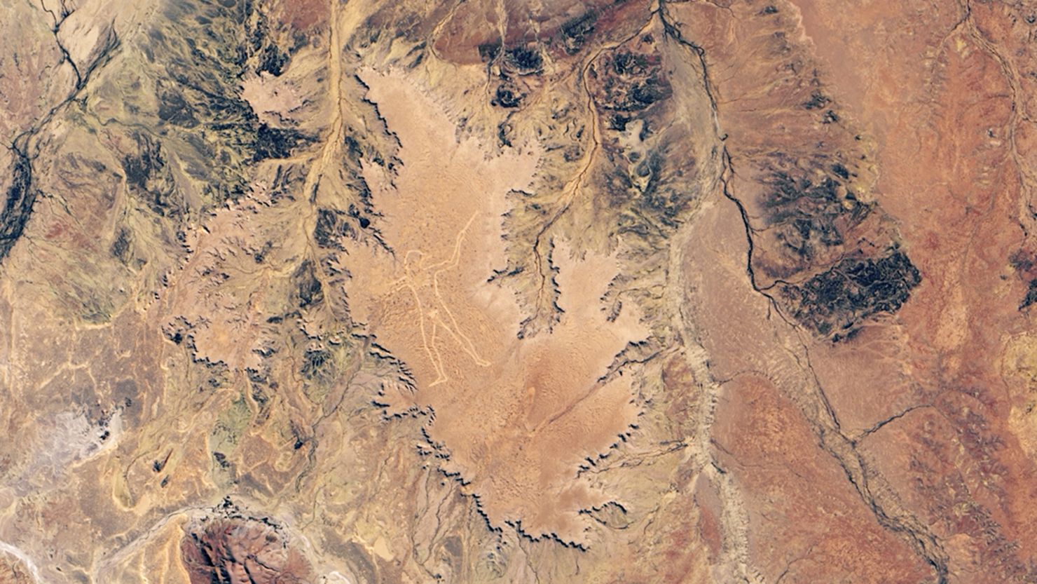 Satellietopname waarop de Marree Man goed zichtbaar is - Foto: NASA