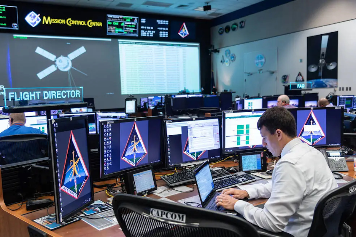 Open MCT (Mission Control Technologies) is een volgende-generatie mission control-raamwerk voor datavisualisatie op desktop- en mobiele apparaten, ontwikkeld bij NASA's Ames Research Center in samenwerking met het Jet Propulsion Laboratory. NASA Het is open source (beschikbaar op GitHub) en kan streaming en historische data, beelden, tijdlijnen, procedures en andere datavisualisaties op één plek tonen. Open MCT wordt gebruikt bij JPL en Ames, en JSC gebruikt het als basis voor bepaalde visualisatietoepassingen, maar het is niet het primaire consolesysteem voor ISS-real-time vluchtcontrole in FCR 1. Cimarron Software Services is een bedrijf dat door NASA is gecontracteerd sinds 1988 en real-time oplossingen levert voor Mission Control ter ondersteuning van bemande ruimtevaartoperaties. Dit is een van de contractors die maatwerksoftware schrijft en onderhoudt voor de specifieke consolefuncties, zoals het systeem voor de CRONUS-console dat command-and-data-handling van het ISS bewaakt. De TOPO-controleur, verantwoordelijk voor de baan van het ISS, gebruikt gespecialiseerde baanmechanische software. Het bekendste pakket is het GOST-systeem (Ground Operations Support Tool) en aanverwante JSC-intern ontwikkelde trajectberekeningstools. Voor Orion/Artemis-missies zijn nieuwe FDO-tools ontwikkeld die de baan naar en om de Maan berekenen. De FAO (Flight Activities Officer) werkt met gespecialiseerde planningssoftware voor het samenstellen van de dagelijkse en wekelijkse tijdlijn van de bemanning. NASA JSC heeft hiervoor het OSTPV (Operations Support Tasking and Planning Viewer) ontwikkeld, een intern planningstool dat activiteiten van de bemanning, EVA's, lanceringen van bevoorradingsvoertuigen en experimentenschema's integreert.