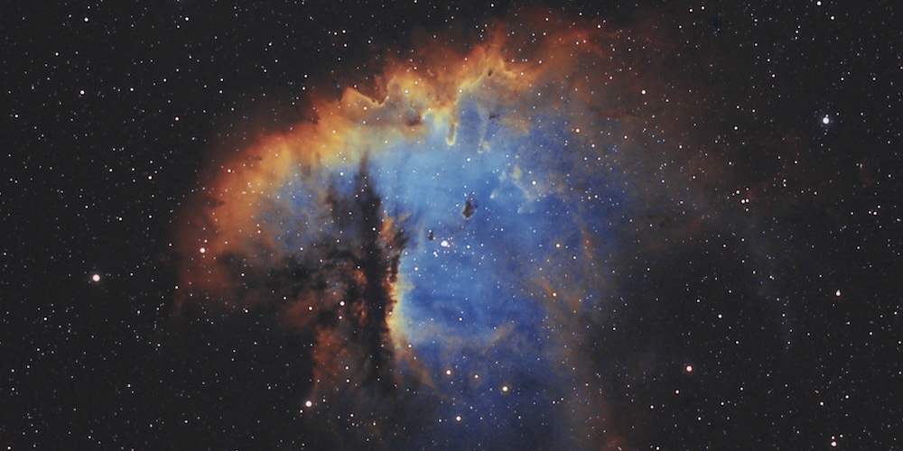 NGC 281 is voor astrofotografen een van de meest dankbare objecten aan de herfst- en winterhemel, een object dat bij elke kwaliteit van apparatuur en elke belichtingstijd iets te laten zien heeft, maar dat zijn ware rijkdom pas onthult aan wie bereid is de nodige tijd en moeite te investeren. Qua brandpuntsafstand is NGC 281 bijzonder veelzijdig. Met een brandpuntsafstand van 300 tot 500 mm op een APS-C sensor of 400 tot 700 mm op fullframe past de nevel comfortabel in het beeldveld met voldoende omgeving om context te bieden. Op dit brandpuntsbereik zijn de hoofdstructuur van de nevel, de donkere inham van de Pacman-mond en de omliggende flauwere structuren allemaal in beeld, en zijn de stofpijlers al als donkere structuren herkenbaar in het centrale deel. Met langere brandpuntsafstanden van 700 tot 1200 mm worden de stofpijlers in detail zichtbaar, de individuele compacte knobbels, de heldere geïoniseerde randen, de subtiele dichtheidsvariaties in het gas rondom de pijlerstructuren. Op dit brandpuntsbereik wordt NGC 281 een object van grote detailrijkdom dat uren van belichtingstijd kan absorberen zonder zijn geheimen volledig prijs te geven.