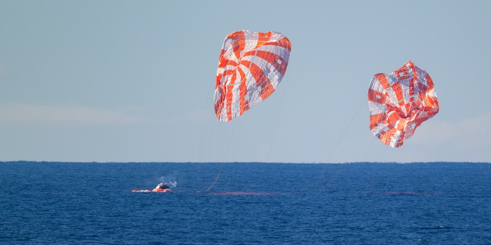 Toch heerste er enige spanning in de vluchtleiding toen Orion de aardatmosfeer binnenkwam en gedurende zes minuten geen radiocontact meer gaf vanwege interferentie door plasma tijdens de afdaling. “Natuurlijk is er spanning,” zei Rick Henflig, vluchtleider van de Artemis 2-terugkeer, na de landing tijdens een persconferentie. “Als je geen spanning zou voelen bij het terugbrengen van het ruimtevaartuig, zou je waarschijnlijk geen hartslag hebben.” Maar hij en zijn team hadden het volste vertrouwen in het hitteschild en de prestaties van Orion, net als de rest van Mission Control en de astronauten zelf. Dat vertrouwen was terecht, want Integrity heeft vandaag zijn vuurproef doorstaan. De capsule kwam om 19:53 uur (23:53 GMT) de atmosfeer binnen boven de Stille Oceaan ten zuidoosten van Hawaï. Tien minuten later gingen de remparachutes van de capsule zoals gepland open, kort daarna gevolgd door de drie grote hoofdparachutes. De hoofdparachutes hielpen de afdaling van Integrity te vertragen tot 31 km/u, de snelheid waarmee het reisde toen het om 20:07 uur EDT (00:07 GMT op 11 april) het water raakte voor de kust van San Diego, ongeveer 3.200 km van de plek waar het voor het eerst de atmosfeer binnenkwam. “Een perfecte landing voor Integrity en zijn vier astronauten,” zei Navias. “Het was in alle opzichten een missie uit het boekje.” Een bergingsschip, de USS John Murtha, van de marinebasis San Diego, lag in het gebied te wachten om de astronauten thuis te verwelkomen en hen aan wal te brengen voor medische controles. Alle vier zouden in goede gezondheid en opgewekte stemming verkeren.