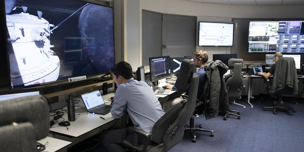 In het technische centrum ESTEC van ESA in Nederland fungeert een ruimte met de naam Eagle als het Europese knooppunt voor missie-evaluatie van de Europese Servicemodule. Ingenieurs houden het ruimtevaartuig 24 uur per dag in de gaten via speciale consoles voor de besturing, voortstuwing, avionica, thermische regeling en levensondersteunende systemen, mechanismen en stroomvoorziening, en veiligheid. De teams analyseren een continue stroom van live telemetriegegevens van het ruimtevaartuig en staan klaar om op elke afwijking te reageren. Eagle staat in directe verbinding met de Mission Evaluation Room in het Johnson Space Center van de NASA in Houston, waarmee samen een trans-Atlantisch netwerk van experts wordt gevormd die Orion beter kennen dan wie dan ook. “Omdat wij het ruimtevaartuig hebben gebouwd, kennen we elk onderdeel ervan, tot aan de laatste sensor toe. Daarom kunnen we in geval van afwijkingen met vertrouwen beoordelen of de missie veilig kan worden voortgezet en hoe we tijdens de vlucht de nodige aanpassingen kunnen doorvoeren,” vertelt Michael Flach, architect van het subsysteem voor orbitale voortstuwing voor de Europese servicemodule bij Airbus. Door vanuit Europa te werken, blijft het team ook nauw verbonden met de industriële partners in 10 ESA-lidstaten die de module hebben gebouwd. Vanuit Eagle kunnen ingenieurs indien nodig rechtstreeks met toeleveranciers overleggen, terwijl ze doorwerken aan toekomstige European Service Modules en andere verkenningsmissies.