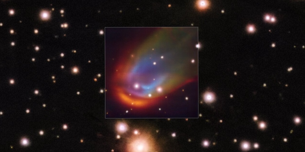 Deze opname, gemaakt met het MUSE-instrument van ESO’s Very Large Telescope, toont schokgolven rond de