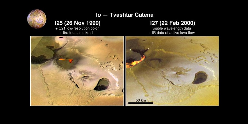 Vulkanische activiteit op de Jupitermaan Io - Foto's: NASA