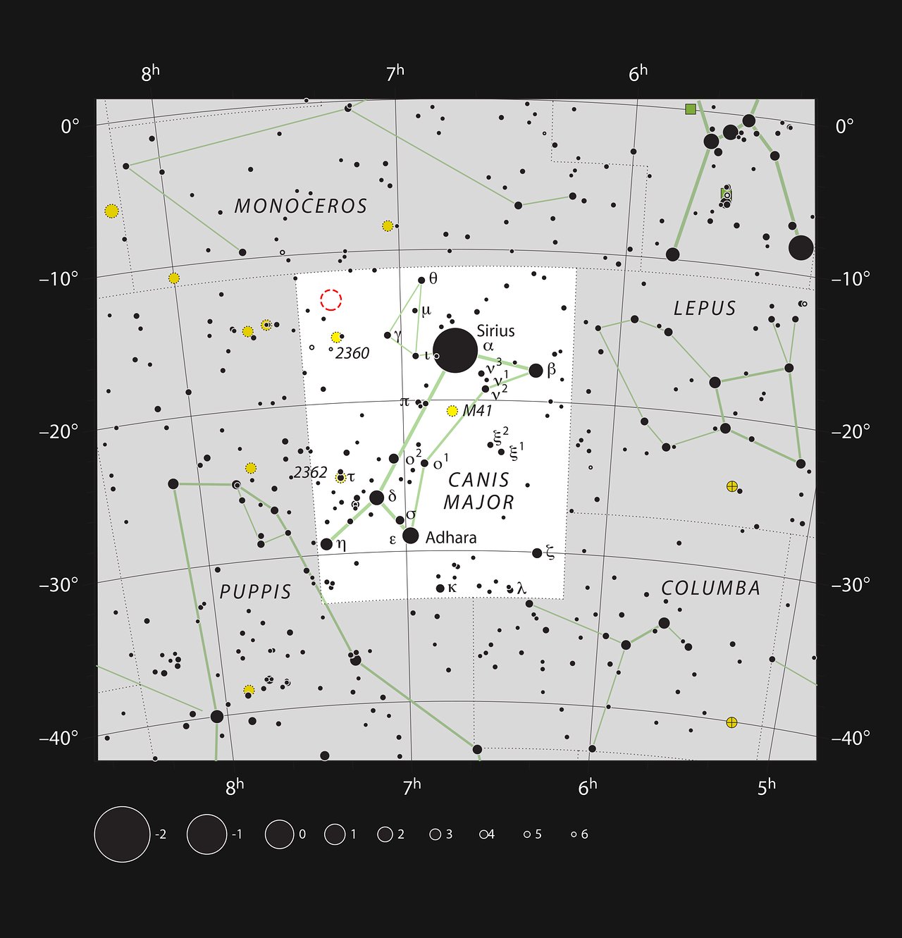 NGC 2359 bevindt zich in het sterrenbeeld Canis Major, de Grote Hond, een sterrenbeeld dat prominent aanwezig is aan de winterhemel op het noordelijk halfrond en de zomerhemel op het zuidelijk halfrond. Het object ligt op een rechte klimming van ongeveer 7u 18m 30s en een declinatie van -13° 13', wat het relatief laag aan de hemel plaatst voor waarnemers op gematigde noordelijke breedtegraden, maar zeker niet onbereikbaar. De afstand tot NGC 2359 is een onderwerp dat in de loop der jaren verfijnd is. Moderne schattingen plaatsen het object op ongeveer 11.000 tot 15.000 lichtjaar van de Aarde, met de meest geciteerde waarden rond de 12.000 lichtjaar. Op die afstand heeft de nevel een fysieke diameter van ruwweg 30 lichtjaar voor het centrale, compacte deel, terwijl de totale structuur inclusief de omliggende gasschillen zich uitstrekt over een gebied van meer dan 50 lichtjaar. Qua schijnbare grootte aan de hemel beslaat het hoofdgedeelte van de helm ongeveer 8 bij 6 boogminuten, met de flauwere omliggende structuren die nog verder reiken. Ter vergelijking: de volle maan heeft een diameter van 30 boogminuten, wat betekent dat NGC 2359 hemelsbreed roughly een kwart van de maan beslaat, groot genoeg voor een telescoop met een matige brandpuntsafstand om de interne structuur te beginnen oplossen.